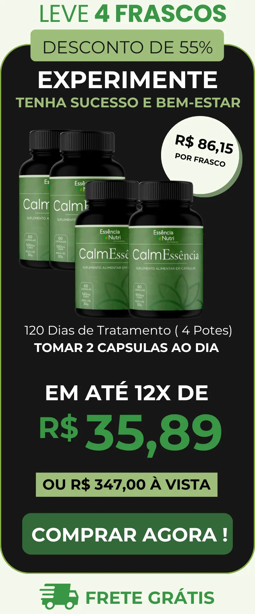 Calm Essência é ideal para quem sofre com ansiedade, insônia, estresse constante e dificuldade para relaxar. Perfeito para quem busca uma mente tranquila, noites de sono reparador e dias mais leves e equilibrados.